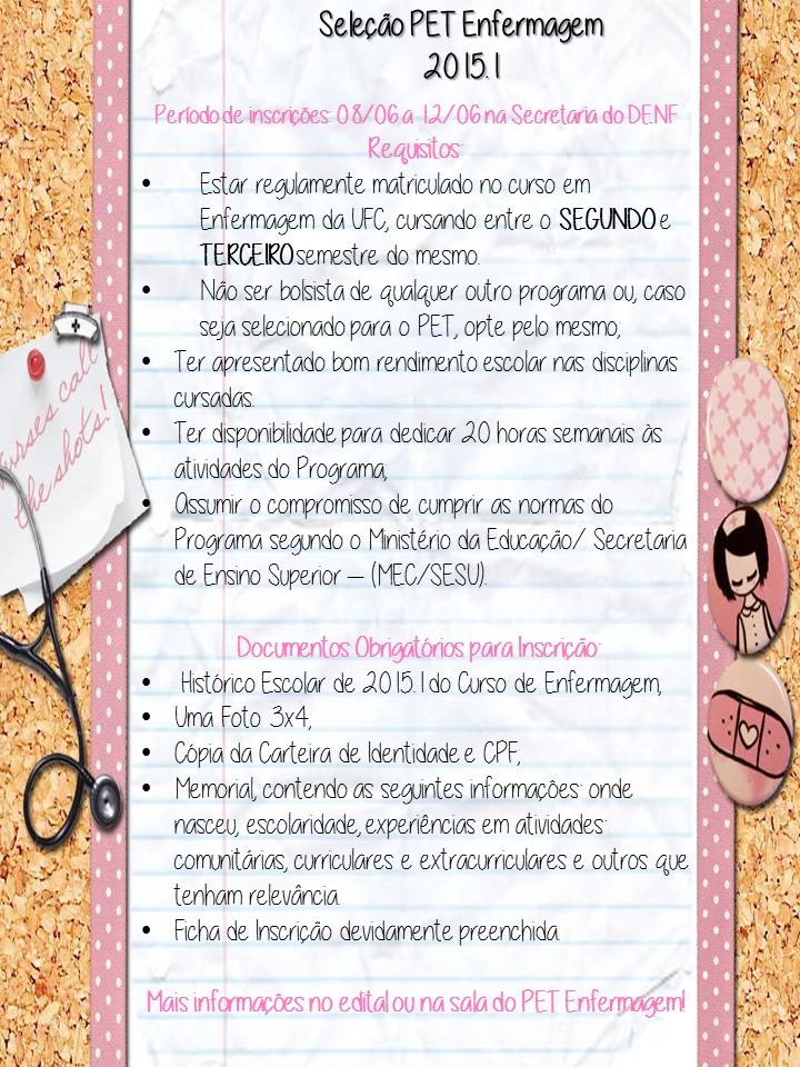 Seleção de novo bolsista PET Enfermagem 2015.1